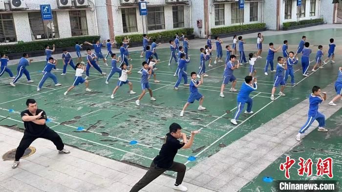深圳市寶安區(qū)西鄉(xiāng)小學(xué)的學(xué)生們在練習(xí)華林派武術(shù)操 西鄉(xiāng)小學(xué) 供圖