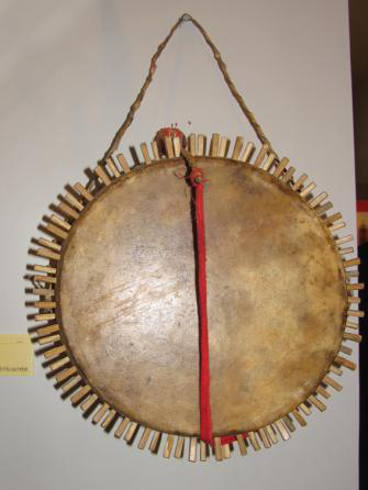 侗族樂(lè)器還有:豎吹簧管樂(lè)器,葉子笛;吹樂(lè)器,木葉;嗩吶,在湘西通道一帶叫“色哦”,在廣西三江一帶叫“西簫”;擊樂(lè)器,銅鼓(圖為侗族刺鼓)。