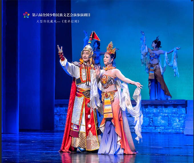 9月14日,作為第六屆全國少數(shù)民族文藝會(huì)演參演劇目,由青海省選送、青海省藏劇團(tuán)(黃南藏族自治州民族歌舞劇團(tuán))創(chuàng)作演出的藏戲《意卓拉姆》在央視網(wǎng)和國家民委門戶網(wǎng)站進(jìn)行演播。該劇講述了傳說中的仙女意卓拉姆與人間的諾桑王子相愛,歷經(jīng)挫折與磨難后終成眷屬的愛情故事,表現(xiàn)出意卓拉姆對(duì)愛情的忠貞不渝和諾桑王子堅(jiān)韌不拔的意志。
