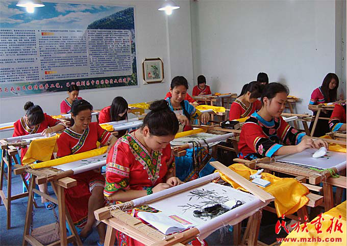 2015年,李紹玉榮獲年度“全國優(yōu)秀農(nóng)民工”。2016年,李紹玉成為重慶非物質(zhì)文化遺產(chǎn)——彭水苗繡的代表性傳承人。從一個打工女,到回家鄉(xiāng)帶動村民致富,再到成為全國人大代表,她說自己深感榮幸和責(zé)任重大。“總理報告里專門提到‘加強(qiáng)文物保護(hù)利用和文化遺產(chǎn)保護(hù)傳承’,我自己的成長,就得益于此。苗繡是苗族人民古老而美麗的技藝,我們有責(zé)任把它世代傳承下去。我們也要在苗族文化與手工藝術(shù)品融合上下功夫,使傳統(tǒng)工藝與市場結(jié)合、傳統(tǒng)元素與現(xiàn)代時尚相結(jié)合?!?/p>