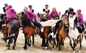 2014年5月2日,新疆克拉瑪依市在烏爾禾鄉(xiāng)舉辦了第三屆少數(shù)民族傳統(tǒng)體育運(yùn)動(dòng)會(huì)。在開幕式上,數(shù)萬名各族市民和農(nóng)牧民觀看了克拉瑪依市千余名各族退休職工表演的大型健身操。300余名來自維吾爾族、哈薩克族、蒙古族等民族的運(yùn)動(dòng)員,參加了賽馬、叼羊、姑娘追、摔跤等活動(dòng)。圖為叼羊比賽現(xiàn)場(chǎng)。