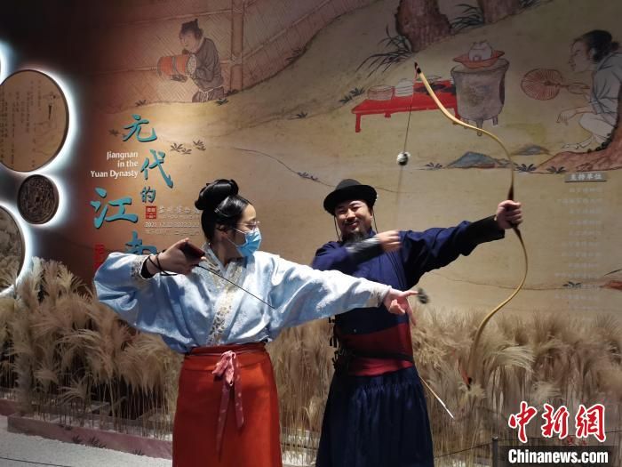 工作人員穿著元代人的裝束現(xiàn)場(chǎng)“彎弓射大雕”?!$娚z