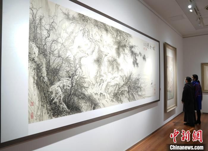 在展覽上,為慶祝中國(guó)藝術(shù)研究院建院70周年,田黎明和許俊,牛克誠(chéng)、周石峰、任清和曾三凱,劉萬(wàn)鳴和劉彥水,趙建成、崔進(jìn)和劉少寧分別合作的《新綠》《千巖霞映》《棲禽圖》《我見(jiàn)青山多嫵媚》4幅丈二尺幅的中國(guó)畫同時(shí)亮相。