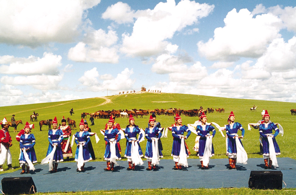 內(nèi)蒙古烏蘭牧騎的演員,吹拉彈唱跳,幾乎個個是多面手。從以前騎馬下鄉(xiāng)到現(xiàn)在坐車下鄉(xiāng),方式雖然有變,但為農(nóng)牧民演出的熱情沒有變。鄂溫克自治旗烏蘭牧騎在當?shù)貫檗r(nóng)牧民演出都是公益性的,一年最少也有100多場。但自然地,由上級指派、旅游接待、大型晚會、出訪演出,則收一些相應費用。全年下來300多場。他們的演出節(jié)目,一般都有舞蹈、獨唱、重唱、馬頭琴合奏、民歌聯(lián)唱等,包括《敖包相會》、《萬馬奔騰》等馬頭琴名曲,也有他們自己創(chuàng)作的《山林回想》、《鄂溫克大地》等獲獎歌舞劇目。