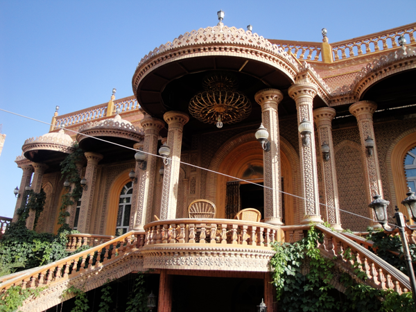 維吾爾族的建筑物有其獨特風(fēng)格。房屋方形,有較深的前廊;室內(nèi)鑿壁龕,并飾以各種花紋圖案。舊式房屋多系土木結(jié)構(gòu),窗子較小,房頂開一個窗,通風(fēng)采光差;室內(nèi)進(jìn)門有一連灶土炕,用來做飯取暖。平房一般比較講究寬敞明亮通風(fēng)。廳室布置整潔樸雅,四壁呈白色泛藍(lán),掛的壁毯,靠墻置床,被褥均展鋪于床罩或毛毯之下,床上只擺設(shè)一對鏤花方枕。室中央置長桌或圓桌,家具及陳設(shè)品多遮蓋有鉤花圖案的裝飾巾,門窗掛絲絨或綢類的落地式垂簾,并襯飾網(wǎng)眼針織品。地面多裝飾民族圖案。維吾爾族人喜歡在庭院中種植花卉、果樹和葡萄,整個環(huán)境顯得雅靜、清新。