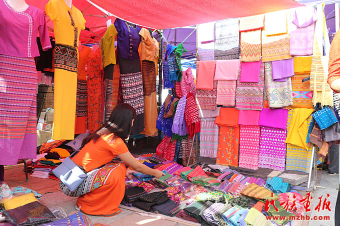 新年慶典活動(dòng)上售賣的傣族服飾