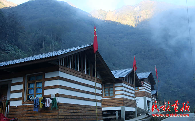 國(guó)家大力支持發(fā)展獨(dú)龍族社會(huì)事業(yè),真正為獨(dú)龍族百姓謀福利。獨(dú)龍族居民房屋前,家家掛著鮮艷的五星紅旗