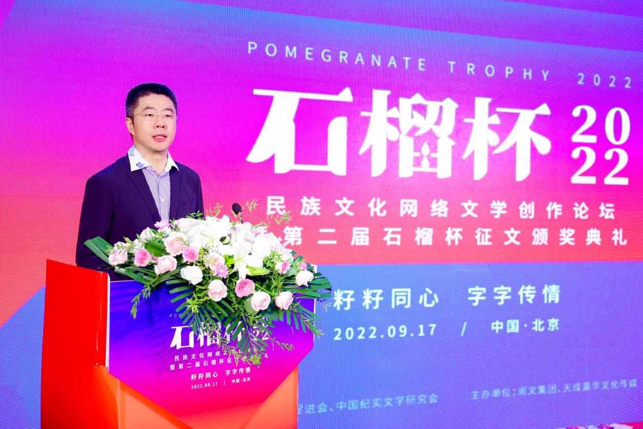 2022年9月17日,民族文化網(wǎng)絡(luò)文學(xué)創(chuàng)作論壇暨第二屆石榴杯征文頒獎活動在民族文化宮舉行。本次活動得到了國家民委所屬中國少數(shù)民族文化藝術(shù)促進會和中國紀(jì)實文學(xué)研究會的指導(dǎo)與支持,由閱文集團、北京天成嘉華文化傳媒主辦,天成達星國際傳媒承辦。