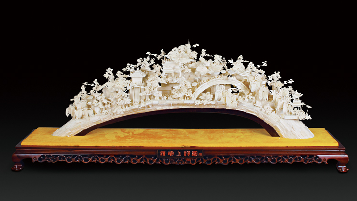 猛犸象牙雕藝術(shù)作品《清明上河圖》 圖片來(lái)源:百度圖片
