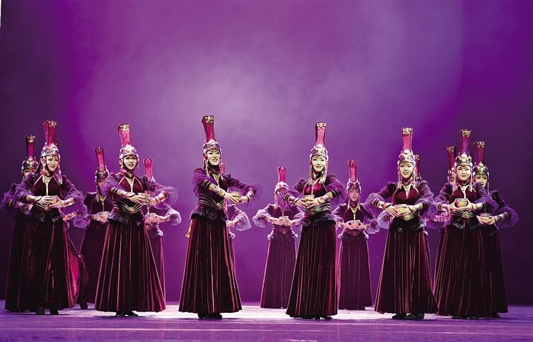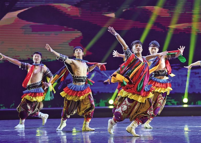 在第11屆中國(guó)舞蹈“荷花獎(jiǎng)”評(píng)選中,13位身著蒙古袍、顫顫巍巍的“爺爺”拄著拐杖奪得金獎(jiǎng)?!盃敔敗笔种械墓照葧r(shí)而變成自拍桿,時(shí)而又變成馬頭琴,風(fēng)趣靈動(dòng)的蒙古舞與流行樂(lè)混搭得異常和諧,呼和浩特民族演藝集團(tuán)編創(chuàng)的舞蹈《爺爺們》如同不一樣的煙火,在二十一世紀(jì)的蒙古舞星空炸裂出別樣的絢爛。2019年,內(nèi)蒙古舞蹈迎來(lái)高光時(shí)刻,民族舞劇《草原英雄小姐妹》斬獲文華大獎(jiǎng),填補(bǔ)了內(nèi)蒙古在文華獎(jiǎng)?lì)I(lǐng)域的空白;由鄂爾多斯民族歌舞劇院編創(chuàng)的舞蹈作品《黑緞子坎肩》捧回第12屆中國(guó)舞蹈“荷花獎(jiǎng)”小金人。在似錦繁華迷人眼的舞壇,蒙古舞憑借勃發(fā)的民族生命力和強(qiáng)大的藝術(shù)感染力獨(dú)領(lǐng)風(fēng)騷。
