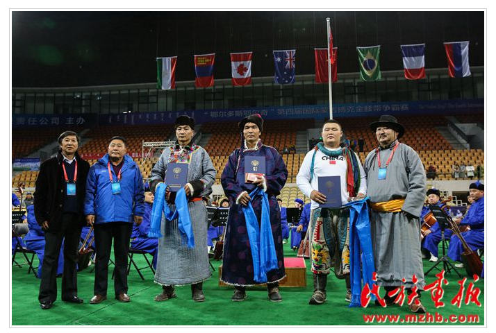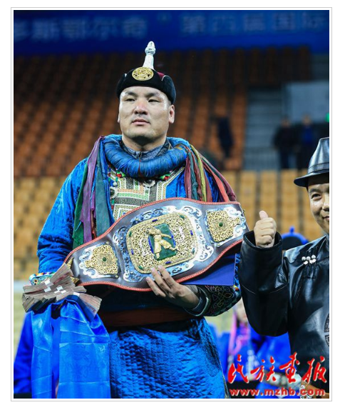 “鄂爾多斯鄂爾奇”第四屆國際蒙古搏克金腰帶爭霸賽冠軍得主查干扎那