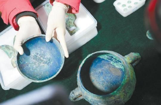在發(fā)掘中,考古工作者還發(fā)現(xiàn)了一件趣事。M1901號墓葬新出土的銅簋與40多年前出土的圉簋紋飾相同,器蓋內(nèi)銘文為“白(伯)魚作寶尊彝”,器內(nèi)底銘文則有“王賜圉貝,用作寶尊彝”字樣?!皳?jù)銘文推斷,這兩件簋的蓋、身在下葬時應是混淆了,一錯3000年?!蓖蹙дf,時隔40余年,兩器重聚首,也證明了(伯)魚和圉實為同一人,對于西周的名、字制度研究,增加了確鑿的證據(jù)。同時,該墓葬新出土的青銅面具、獸面形銅飾、成組的銅車馬器、鏤空有銎銅戈,紋飾精美、細節(jié)豐富,均為首次發(fā)現(xiàn)。M1903號墓葬出土了多件漆器,包括三角紋簋、豆等,“漆器的發(fā)現(xiàn),彌補了上世紀現(xiàn)場文物保護技術有限的遺憾,對于墓葬隨葬器用制度的研究具有重要意義?!?/p>