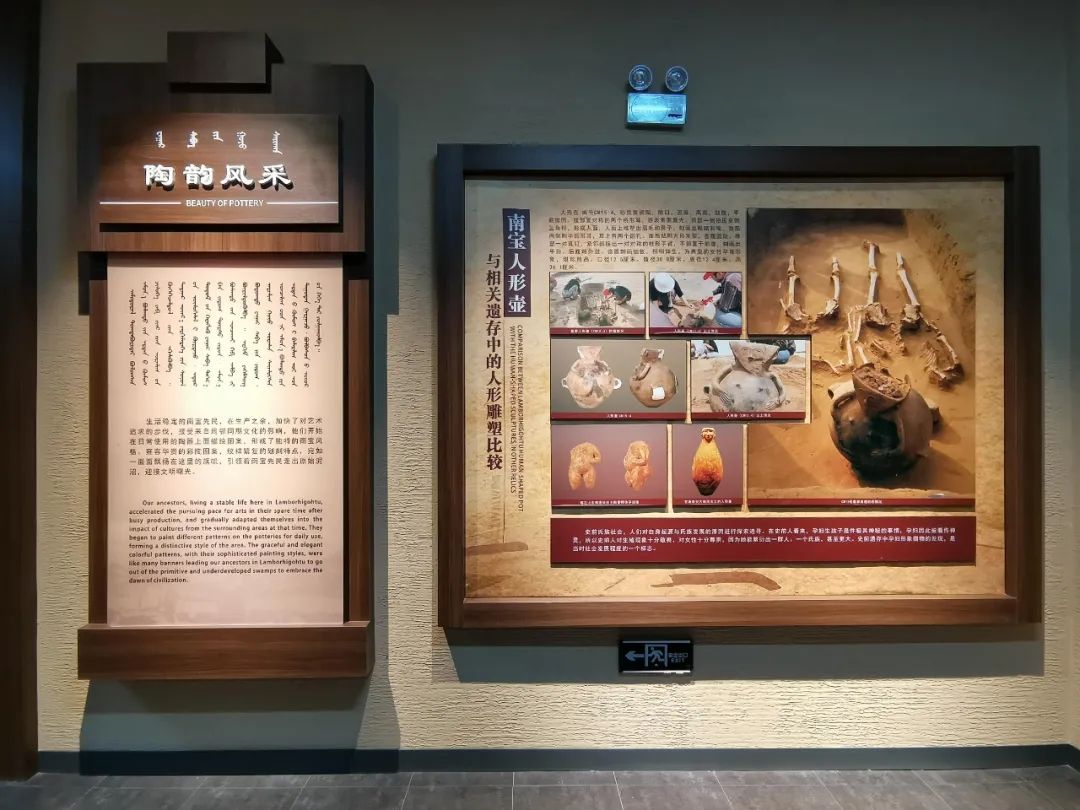 陶韻風(fēng)采;生活穩(wěn)定的南寶先民,在生產(chǎn)之余,加快了對(duì)藝術(shù)追求的步伐,接受來自周鄰?fù)谖幕挠绊懀麄冮_始在日常使用的陶器上面描繪圖案,形成了獨(dú)特的南寶風(fēng)格。雍容華貴的彩陶?qǐng)D案,紋樣繁復(fù)的劃刻特點(diǎn),宛如一面面飄揚(yáng)在這里的旗幟,引領(lǐng)著南寶先民走出原始泥沼,迎接文明曙光。