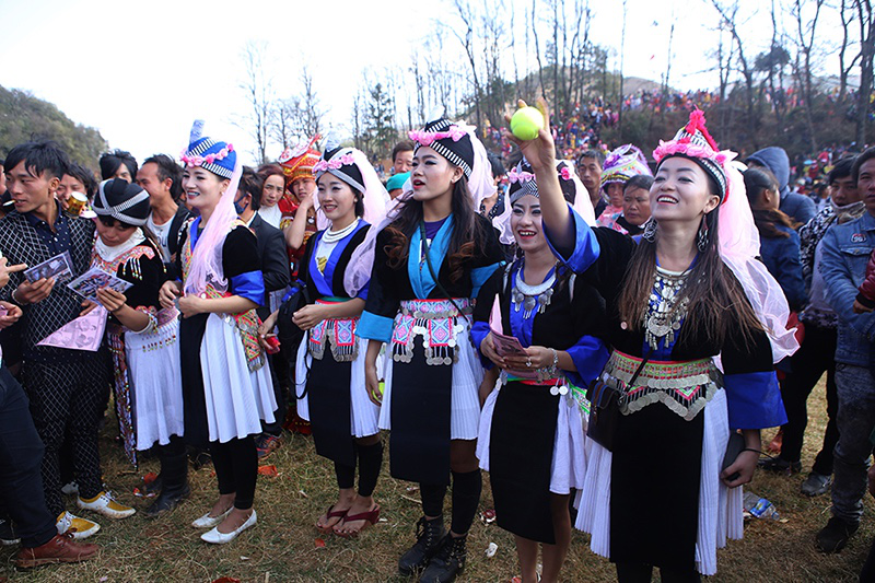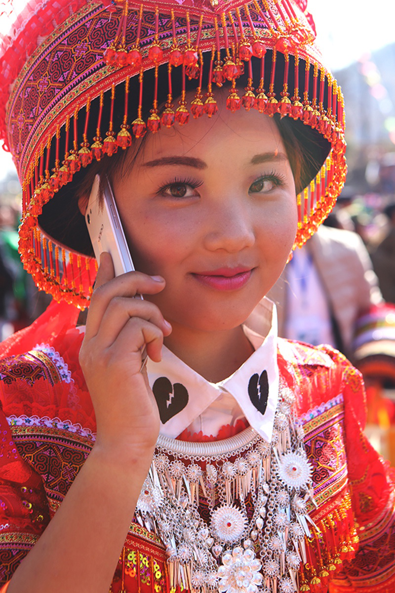 由于在歷史上經(jīng)歷長(zhǎng)時(shí)間、大范圍的遷徙,苗族文化形成了較強(qiáng)的環(huán)境適應(yīng)能力和流動(dòng)變遷特征。節(jié)日作為民族文化的凝集點(diǎn),慶祝方式和形態(tài)也處于動(dòng)態(tài)的演變和傳承之中。在大布紅的花山場(chǎng),一個(gè)從老撾過來的苗族女子樂隊(duì)讓當(dāng)?shù)氐拿缱迦烁械胶闷妗f著同樣的西部苗語,卻穿著略顯不同的衣服。她們排成一行,教人們一來一往地扔繡包,一時(shí)間圍觀者無數(shù)。不消多久,女子樂隊(duì)手中的CD就在人群中銷售一空。