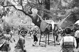 幾百年后,時代的鏡頭奇跡般地聚焦在這個邊遠山村,古色古香的寨子依舊,古樸渾厚的民族風(fēng)情依然。如今,灣子苗族在固守的土地上世世代代繁衍生息,過著與世無爭、日出而作日落而息的農(nóng)耕生活。守著大山,喝著清泉,數(shù)著星星,陪伴月亮與太陽相行至今,他們堅守原始的本民族傳統(tǒng),在一方古老、清幽的山寨間,打造和守護著自己精心繪制的“伊甸園”。