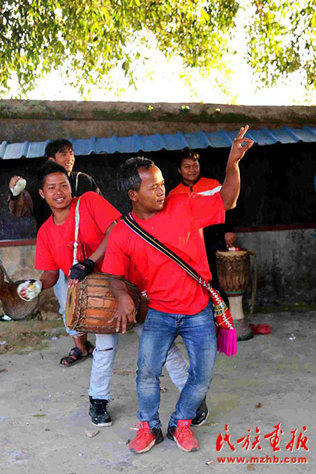 沿著曲折的山路開車一個多小時,記者來到西盟縣秧洛村一組,恰巧碰到了一對新人喜結(jié)良緣。清脆的木鼓聲在大山里回蕩,秧洛村的村民喝喜酒、跳木鼓舞。