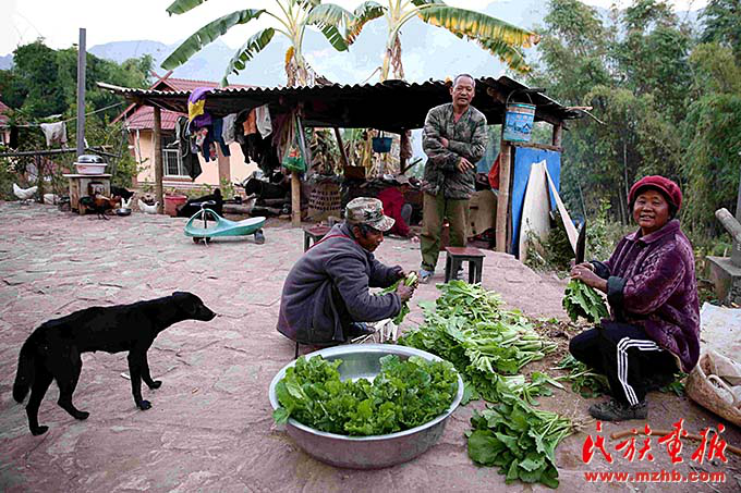 在娜作家記者見到了娜作的老伴兒大巖恩,他邊清理打捆著剛剛采摘下來的青菜邊說:“這些小菜城里人特別愛吃,沒有上化肥,一點污染沒有。這筐菜在城里一定能賣個好價錢?!?/p>