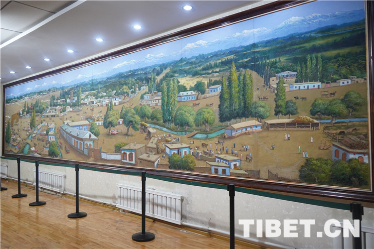 最早,維吾爾族群眾從南疆遷居到這里,他們大部分以傳統(tǒng)手工制造業(yè)為生,而其中多以鑄鍋為業(yè),因此,當時“喀贊其”是指以鑄鍋為業(yè)的人。如今,“喀贊其”不僅僅是個地名,更被作為一個文化概念廣為傳播。圖為再現(xiàn)了喀贊其歷史風貌的巨幅沙粒畫。