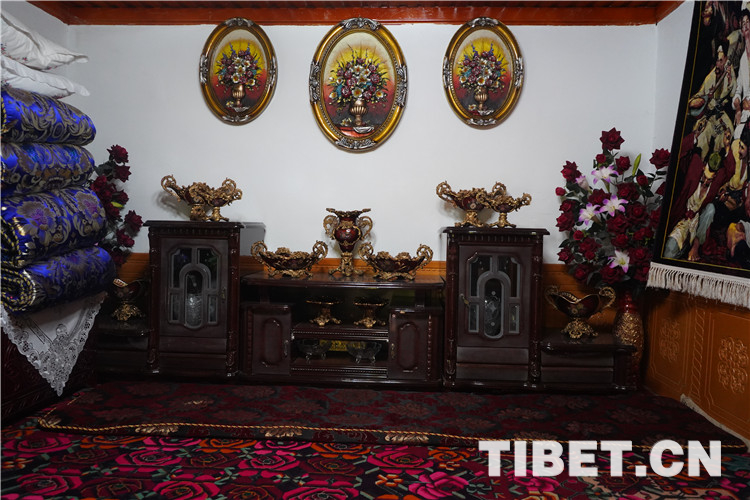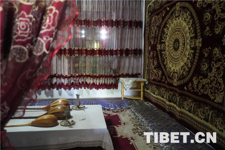 除了古老的純木質結構民宿,喀贊其還有各式磚石結構的民居。院落寬敞明亮、華麗氣派,家家種植著花草、蔬菜,郁郁蔥蔥、生機盎然,葡萄廊架已成為每家的“標配”,葡萄架下是家人休閑、朋友聚會的地方。圖為當?shù)孛窬釉簝取?/p>