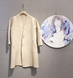哈薩克族羊絨氈衣 秦娜兒·努爾蘭(參展人): 哈薩克人從搖籃到墳?zāi)苟茧x不開氈子。我是在奶奶做的花氈上邁出人生第一步的。奶奶去世的時候,為了紀(jì)念她,我做了這件衣服。這是一件可以穿一輩子的、能承載得起一段記憶的衣服。如果奶奶在世,看到這件衣服也會贊嘆吧!