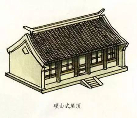 硬山式屋頂有一條正脊和四條垂脊。這種屋頂造型的最大特點是比較簡單、樸素,只有前后兩面坡,而且屋頂在山墻墻頭處與山墻齊平,沒有伸出部分,山面裸露沒有變化。明、清時期及其后,硬山式屋頂廣泛地應(yīng)用于我國南北方的住宅建筑中。正因為它等級比較低,所以屋面都是使用青瓦,并且是板瓦,不能使用筒瓦,更不能使用琉璃瓦。