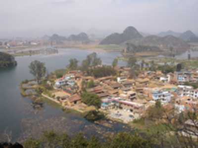 在一次學術會議上,筆者請教了首倡并主導“民族文化生態(tài)村”試點建設的尹紹亭教授,得知在他們首期的五個試點村落建設中,仙人洞村是比較成功的,于是在本項目的調查中,仙人洞村成為重點考察的對象之一。“仙人洞彝族文化生態(tài)村”位于云南丘北縣城西北16公里的普者黑湖畔?!捌照吆凇睘楫?shù)匾妥迦瞿嵴Z,意為“魚蝦多的湖潭”。普者黑實際是由眾多湖泊、河流構成,總面積達165平方公里,已經(jīng)開發(fā)成由5個景區(qū)、56個景點組成的滇東南國家級著名旅游景區(qū)。