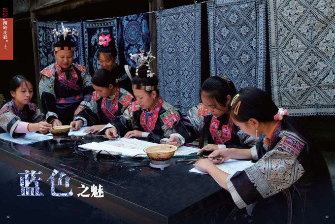 蠟染是貴州省丹寨縣、安順縣、織金縣苗族世代傳承的傳統(tǒng)技藝。 丹寨縣、安順縣及織金縣是以苗族為主體的多民族聚居區(qū),在長期與外界隔絕的艱苦環(huán)境中,這里的居民逐漸形成了自給自足的生活方式,古老的蠟染技藝因此得以保留下來。按苗族習俗,所有的女性都有義務傳承蠟染技藝,每位母親都必須教會自己的女兒制作蠟染。所以苗族女性自幼便學習這一技藝,她們自己栽靛植棉、紡紗織布、畫蠟挑秀、浸染剪裁,代代傳承。在此狀況下,這些苗族聚居區(qū)形成了以蠟染藝術為主導的衣飾裝束(以上三照片由劉軍提供)。