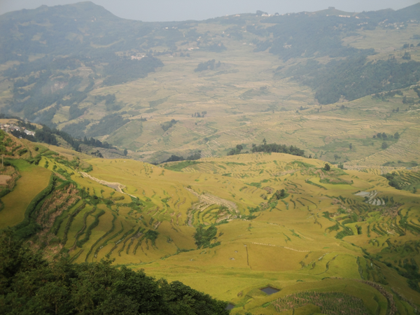 元陽哈尼族開墾的梯田隨山勢地形變化,因地制宜,坡緩地大則開墾大田,坡陡地小則開墾小田,甚至溝邊坎下石隙也開田,因而梯田大者有數(shù)畝、小者僅有簸箕大,往往一坡就有成千上萬畝。元陽梯田規(guī)模宏大,氣勢磅礴,綿延整個紅河南岸的紅河、元陽、綠春及金平等縣,僅元陽縣境內(nèi)就有17萬畝梯田,是紅河哈尼梯田的核心區(qū)。元陽縣境內(nèi)全是崇山峻嶺,所有的梯田都修筑在山坡上,梯田坡度在15度至75度之間。以一座山坡而論,梯田最高級數(shù)達(dá)3000級,這在中外梯田景觀中是罕見的。元陽哈尼梯田主要有3大景區(qū):壩達(dá)景區(qū)包括箐口、全福莊、麻栗寨、主魯?shù)冗B片14000多畝的梯田;老虎嘴景區(qū)包括勐品、硐浦、阿勐控、保山寨等近6000畝梯田;多依樹景區(qū)包括多依樹、愛春、大瓦遮等連片上萬畝梯田。如此眾多的梯田,在茫茫森林的掩映中,在漫漫云海的覆蓋下,構(gòu)成了神奇壯麗的景觀。這些景區(qū)就是目前準(zhǔn)備申報世界遺產(chǎn)的核心保護(hù)區(qū)。