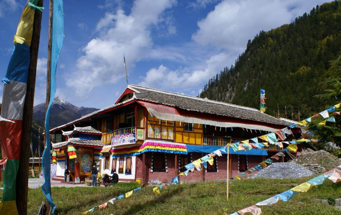 九寨溝里九個(gè)古老的藏族村寨,到處有石磨房、棧道、經(jīng)幡和藏羌歌舞等,藏族特色濃郁而神秘。原始古樸的村寨散落在綠樹(shù)環(huán)抱的群山之中,顯得更加古老、寧?kù)o。九寨溝,平均海拔在2500米左右,屬于寒溫帶地區(qū),所以冬無(wú)嚴(yán)寒,夏無(wú)酷暑,在這里的傳統(tǒng)的建筑大都為木結(jié)構(gòu)。