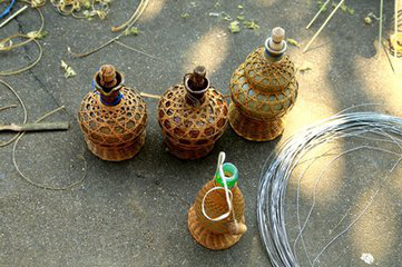 傣族竹編歷史悠久,制作精美,品種豐富,它與傣族人家生活息息相關(guān),是了解傣族文化不能缺少的一部分。對于傣族竹編來講,以編織工藝不同,可以把傣族竹編分為薄篾層編織出平面圖形的平面竹編;用橫截面為矩形的竹絲編織立體造型的立體竹編;將平面竹編和立體竹編編織工藝糅合在一起,編制成既有平面質(zhì)感又有立體形狀的混合竹編。傣族竹編是藝術(shù)創(chuàng)作和藝術(shù)再創(chuàng)作,竹編工藝品可分為粗絲工藝品和細絲工藝品。粗絲竹編工藝品主要有茶杯、糖缸、飯盒、檳榔盒、茶葉罐等,細絲竹編工藝品主要有竹包手袋、挎包和帽子等,它們集實用和觀賞性于一體。例如傣族的“芭蘿”,“芭蘿”是傣族,是一種掛在腰間的竹簍?!鞍盘}”編織精巧,美觀實用,不僅是生產(chǎn)、生活用具,還是精致的裝飾品,還是傣族青年表達愛情的傳遞物。