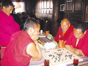 無(wú)論如何,藏棋是流傳下來(lái)了。過(guò)去,藏棋一般是在藏族上層貴族間流傳,之后也傳入了周邊尼泊爾、錫金、不丹等國(guó)。據(jù)說(shuō)1958年錫金王子去日本訪(fǎng)問(wèn)時(shí),曾與日本圍棋高手對(duì)弈一種規(guī)則奇特的圍棋,棋盤(pán)也是自帶的,引起了日本棋壇的驚異,而這位錫金王子說(shuō)是學(xué)自西藏僧人。這種奇特的圍棋應(yīng)該就是藏棋。