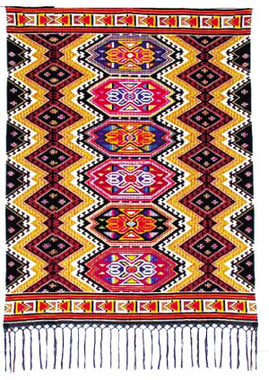 在長期的藝術實踐中,葉水云感到自己的專業(yè)美術水平有限。于是,她考入鳳凰職業(yè)中專學習美術專業(yè),并被留校任教,后又在湘西州教育學院進修大學美術專業(yè)?!巴良铱楀\沒有草稿,最重要的一個環(huán)節(jié)就是配色。以前配色沒有理論指導,主要從個人感覺出發(fā),喜歡紅、綠等艷色系。除了講究圖案平整以外,配得好不好自己也不清楚。學習后才慢慢認識到,配色應注重冷暖色調的對比與襯托?!彼?,葉水云織出來的“西蘭卡普”色彩更為統(tǒng)一調和,艷而不俗,粗獷中有細節(jié),大氣中有精巧,看上去更加舒服。