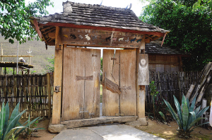 位于云南省西雙版納傣族自治州景洪市嘎灑鎮(zhèn)新寨村的新寨村史館,是一座展現哈尼族傳統(tǒng)文化的小型村史館。該館矗立在寨子邊緣處,是一棟具有哈尼族特色的建筑。院子的門楣上刻著十二生肖,門上的插銷是一塊木板,一伸手就能取下,十分古樸。