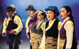 西藏自治區(qū)藏劇團(tuán)演員索朗旺久說(shuō):“這部戲中,我們所有的動(dòng)作都取自傳統(tǒng)藏戲,唱腔也同樣忠于傳統(tǒng)。這樣的表演,能很好地表現(xiàn)劇中人物的情感?!?/p>