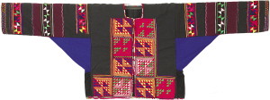 北京服裝學(xué)院民族服飾博物館藏貴州雷山地區(qū)苗族花蝶紋貼補刺繡背扇片。