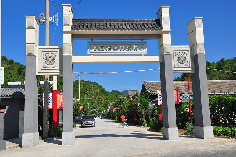 走在七道梁村的街頭,到處洋溢著滿韻清風。村口矗立的牌坊上“七道梁正白旗村”七個大字顯得格外醒目,兩旁的文化墻上印著八旗圖案和滿族習俗宣傳畫……