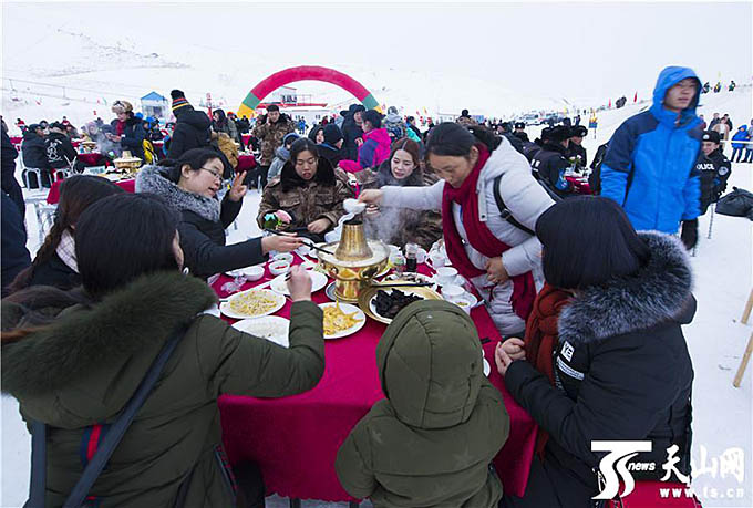 此次冰雪旅游文化節(jié)持續(xù)兩日,內容豐富多樣,除了歌舞表演外,還將各類民俗文化與冰雪主題相融合,將伊犁各族群眾的特色生活方式融入冰雪主題活動中。文化節(jié)設有雪地摩托車、民俗體育活動、冬宰文化展示及美食匯、千人雪上涮火鍋、冰雪篝火音樂節(jié)、雪山煙花宴、雪夜宿天山、那拉提冬雪攝影節(jié)等板塊,各個板塊交互式進行,“體驗”和“互動”貫穿了整個活動過程,拓展了游客對雪和冬季的認知。