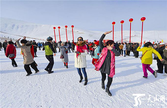 游客們在冰雪旅游文化節(jié)上載歌載舞