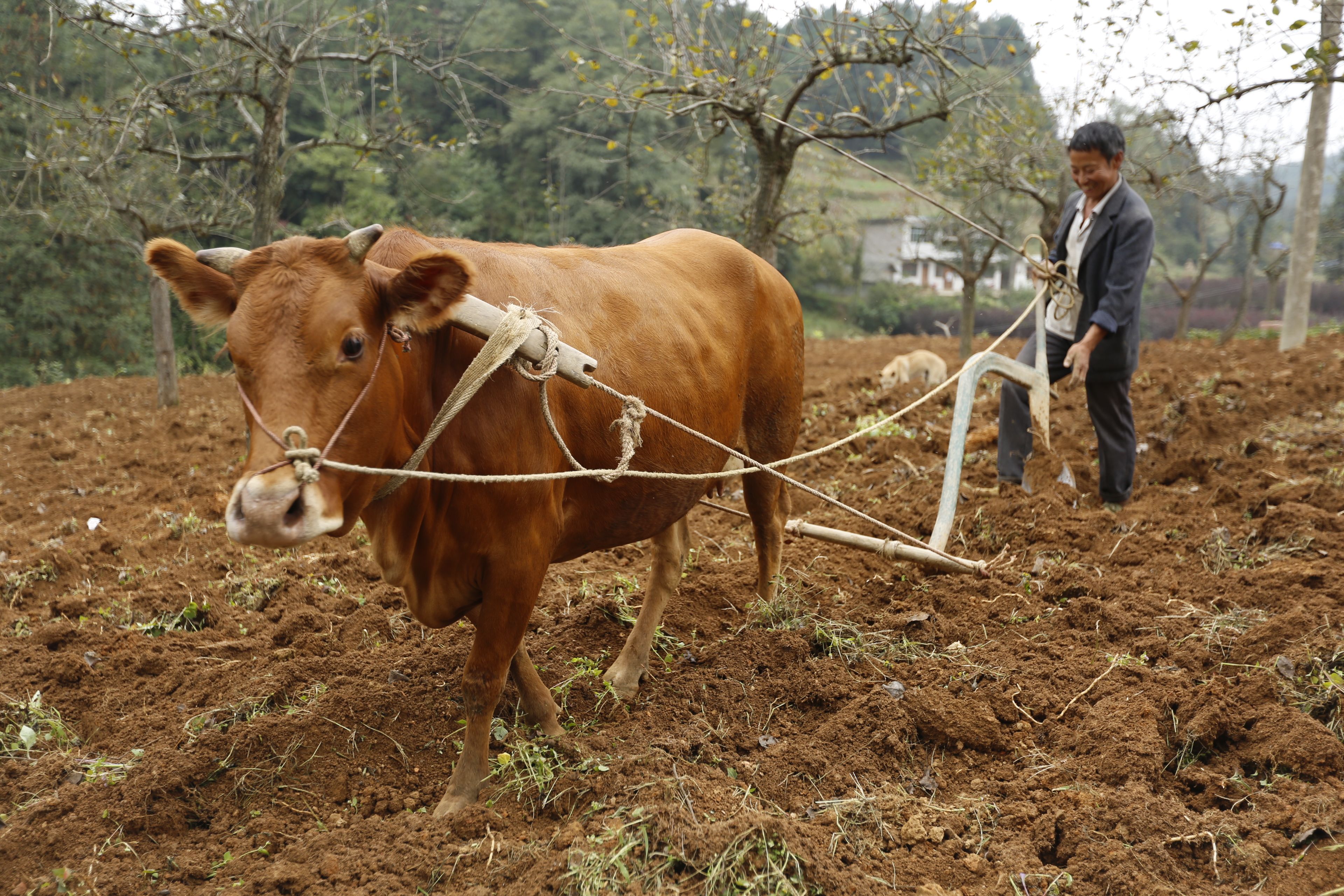 圖片說(shuō)明:貴州貴陽(yáng)苗族農(nóng)作物種植-牛耕田