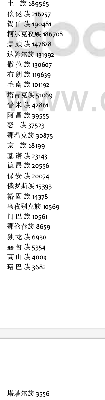 本規(guī)劃所稱的人口較少民族是指全國(guó)總?cè)丝谠?0萬人以下的28個(gè)民族。這些民族是:珞巴族、高山族、赫哲族、塔塔爾族、獨(dú)龍族、鄂倫春族、門巴族、烏孜別克族、裕固族、俄羅斯族、保安族、德昂族、基諾族、京族、怒族、鄂溫克族、普米族、阿昌族、塔吉克族、布朗族、撒拉族、毛南族、景頗族、達(dá)斡爾族、柯爾克孜族、錫伯族、仫佬族、土族。