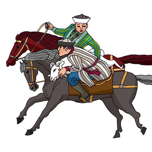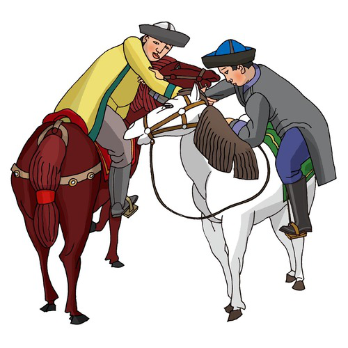 柯?tīng)柨俗巫?馬上角力):柯?tīng)柨俗巫逵?41549人,聚居在新疆克孜勒蘇柯?tīng)柨俗巫灾沃荨?聽(tīng)柨俗巫逯饕w育項(xiàng)目有賽馬、刁羊、摔跤、馬上角力、跑馬拾銀元、跑馬射元寶、月下尋物等。