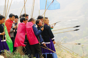儀式當(dāng)天,各家各戶(hù)的父母給自家的孩子穿上新裝;孩子們則削木為刀,編草為穗,插玉米芯做矛頭,剝玉米皮當(dāng)纓槍?zhuān)弥窕@背著用麻籽和燕麥炒制的干糧,從四面八方趕來(lái),聚集在一起。