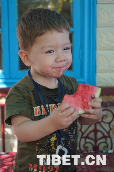 “馕是當(dāng)?shù)厝穗x不開的食物,包括這里的漢族群眾,現(xiàn)在都已經(jīng)習(xí)慣了這樣的飲食。我曾見過當(dāng)?shù)匾恍h族朋友到內(nèi)地一趟,回來后第一件事就是吃拌面、烤肉,喝奶茶,我們多個民族的人長期居住在這里,生活早已交融在一起了。”當(dāng)?shù)鼐用窈Aβ?阿吾提對記者說。圖為當(dāng)?shù)靥厣朗场?/p>