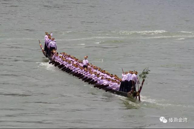 每年的潑水節(jié),西雙版納傣族都要舉行橫渡瀾滄江的賽龍舟活動。一般在潑水節(jié)的第一天舉行。比賽時,江上停泊著披綠掛彩的龍船,船上坐著數(shù)十名精壯的水手,船中間站立1人擊鑼指揮,號令一響,整裝待發(fā)的龍船像箭一般往前飛去,在規(guī)定的范圍內(nèi),哪一隊先到達(dá)目的地為勝。