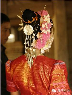 男方家也得請(qǐng)客。新郎啟程去接新娘子,家里馬上就殺雞做飯,新郎新娘回來(lái)后要吃染成黃色的糯米飯和雞肉,表示往后生活美滿幸福,像糯米飯一樣結(jié)成團(tuán)永不分開(kāi)。晌午時(shí)分,是新郎家待客最熱鬧的時(shí)候,幫廚的人擺上各種酒菜,親朋寨鄰老老少少全坐到天井里,歡歡鬧鬧地吃飯。最后,客人們有的陸續(xù)走了,愿留下的湊攏幾桌,邊喝酒邊暢談,一直要吃到第二日還不歇。