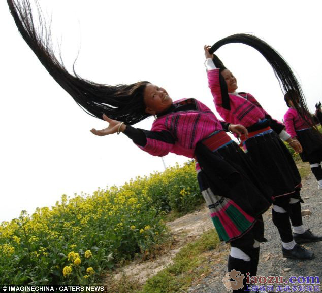 紅瑤族婦女都留著長發(fā),她們一生只剪一次頭發(fā)。這個村莊作為世界第一個長發(fā)村收錄到吉尼斯世界紀(jì)錄中。她們的長發(fā)是非常神圣的,只有她們的丈夫和孩子能看到她們的盤發(fā)。她們認(rèn)為長發(fā)會為其帶來長壽,財富與好運。