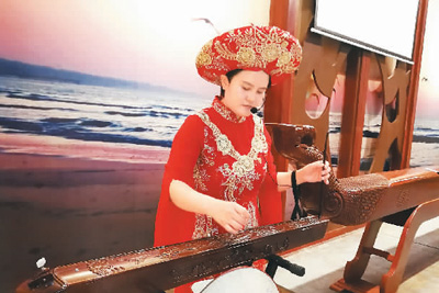 在京族文化傳承與保護中心,記者遇到63歲的獨弦琴藝術(shù)家蘇春發(fā)和32歲的講解員趙霞?!拔?歲跟叔叔學獨弦琴,11歲拜姑丈為師,1991年以來,我親手教出來的學生已有300多人。”今年5月,蘇春發(fā)獲得國家文旅部頒發(fā)的“京族獨弦琴藝術(shù)代表性傳承人”證書。京族姑娘趙霞曾參加“京族哈妹組合”,進入第十四屆CCTV青歌賽原生態(tài)組全國決賽,并榮獲團體優(yōu)秀獎。她左手搖柱,右手撥弦,當場為我們演奏一曲悠揚、委婉的京族民歌《過橋風吹》,把京族少男少女的情動心境演繹得非常唯美。