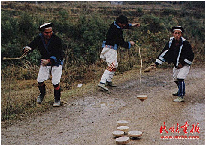 白褲瑤男子在打陀螺(張小寧  攝影)
