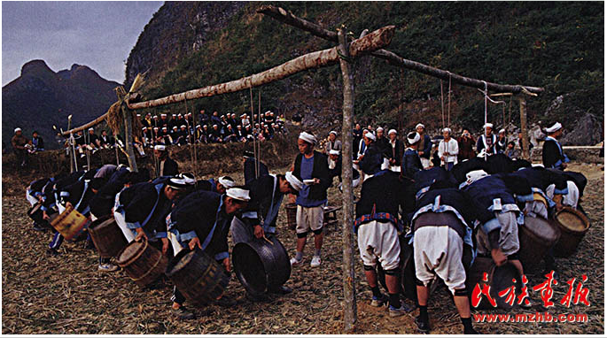 至今白褲瑤用銅鼓送葬的習(xí)俗仍然在延續(xù),只是銅鼓的作用已經(jīng)不光局限在葬禮上了。喜慶節(jié)日、舞蹈娛樂白褲瑤都打起了銅鼓,但是銅鼓從主人家里拿出來后祭鼓的規(guī)矩是不能改變的,要告知銅鼓為什么把它請出來,祈福它好好表現(xiàn)。