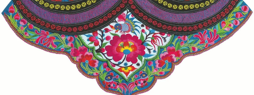 彝族婦女圍腰,是女性審美的結(jié)晶,實(shí)用美觀(guān)。圍腰是最能集中體現(xiàn)彝族女性心靈手巧的女紅作品,因此成為青年男子傳統(tǒng)擇偶的重要標(biāo)準(zhǔn)之一。每條彝族圍腰,須經(jīng)過(guò)剪紙、裁剪、刺繡、挑花、配飾等環(huán)節(jié),每一個(gè)細(xì)微的過(guò)程都傾注了彝女的聰明與才智。事實(shí)上,彝族婦女圍腰,還蘊(yùn)含著重要的彝族社會(huì)歷史、文化信息。